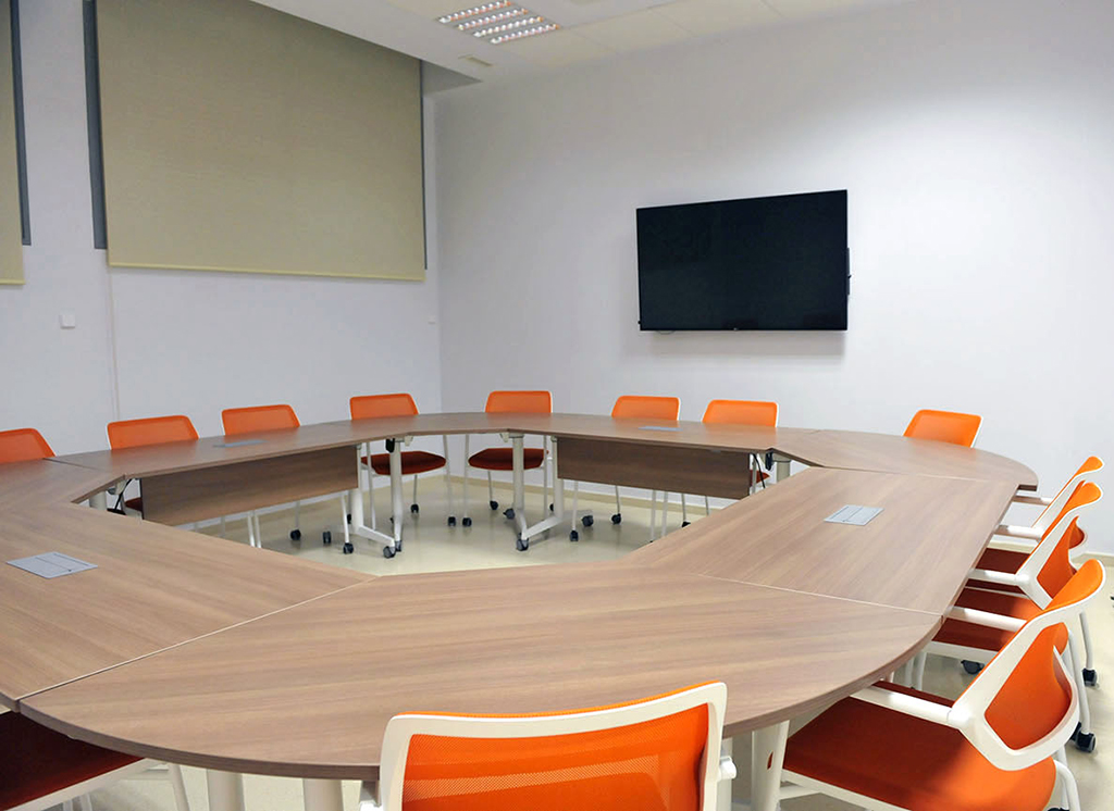También disponen de sistemas de sonorización y microfonía de alta calidad para la celebración de sesiones de formación y presentaciones. Para estas aulas se han diseñado atriles multimedia que permiten realizar presentaciones de una forma sencilla y que facilitan la gestión de los recursos multimedia.