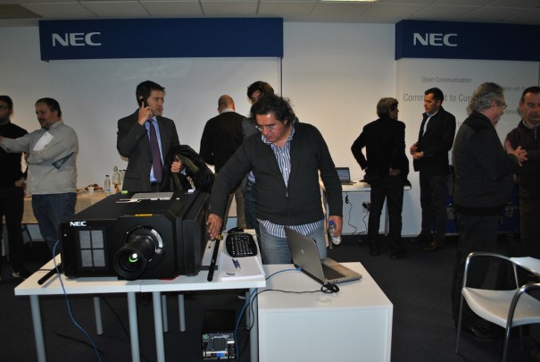 El evento ha contado con la presencia de Gerd Kaiser, senior product line manager large venue projectors de NEC Display Solutions Europe (下の画像の中で), quien ha explicado las ventajas y beneficios asociados de los proyectores de fuente de luz láser de la compañía para ofrecer el máximo rendimiento en instalaciones permanentes en museos, 高等教育, grandes corporaciones, デジタルサイネージ, así como en alquiler en escenarios, 劇場, イベント, 等.