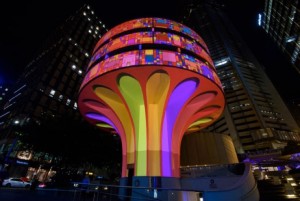 セント メアリーズ大聖堂では、シドニー市にとってクリスマスが持つ意味を再現するための大規模なプロジェクション マッピングを提供しています, 一方、マーティン プレイスはその象徴的な建物から観光客を魅了します。, 空飛ぶ円盤のような形をした, 画像に命を吹き込むカルーセルをシミュレートします. TDCがビデオプロジェクション技術で参加した2つのプロジェクト.