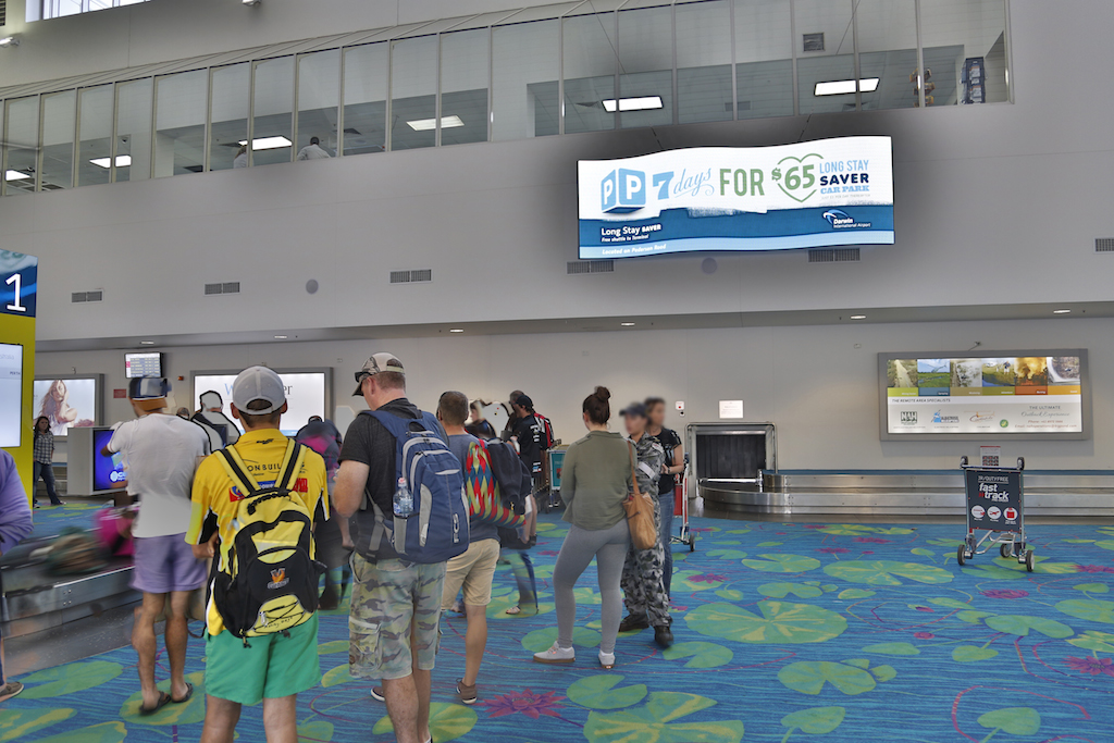 この波打つオーディオビジュアルソリューション, サイズ4.3×1,4 地下鉄, 手荷物受取所にあります, 空港の到着エリアで, 地域の主要な観光スポットやレジャーアトラクションに関する高解像度のビデオコンテンツで待機中の乗客の注意を引きます。.