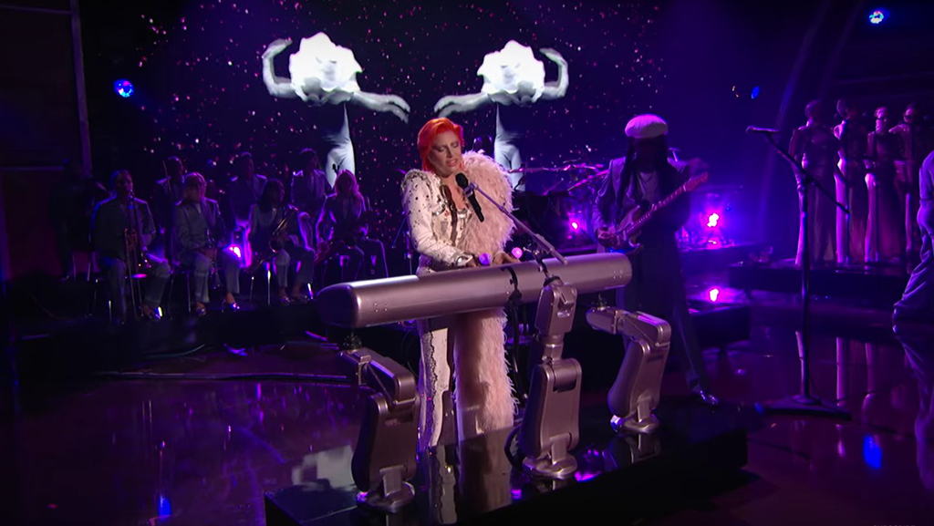 Durante la actuación se desarrolló una ‘cara animada’ para permitir a Lady Gaga adornarse con numerosos looks icónicos en una sola actuación en tiempo real, consiguiendo un espectacular efecto.