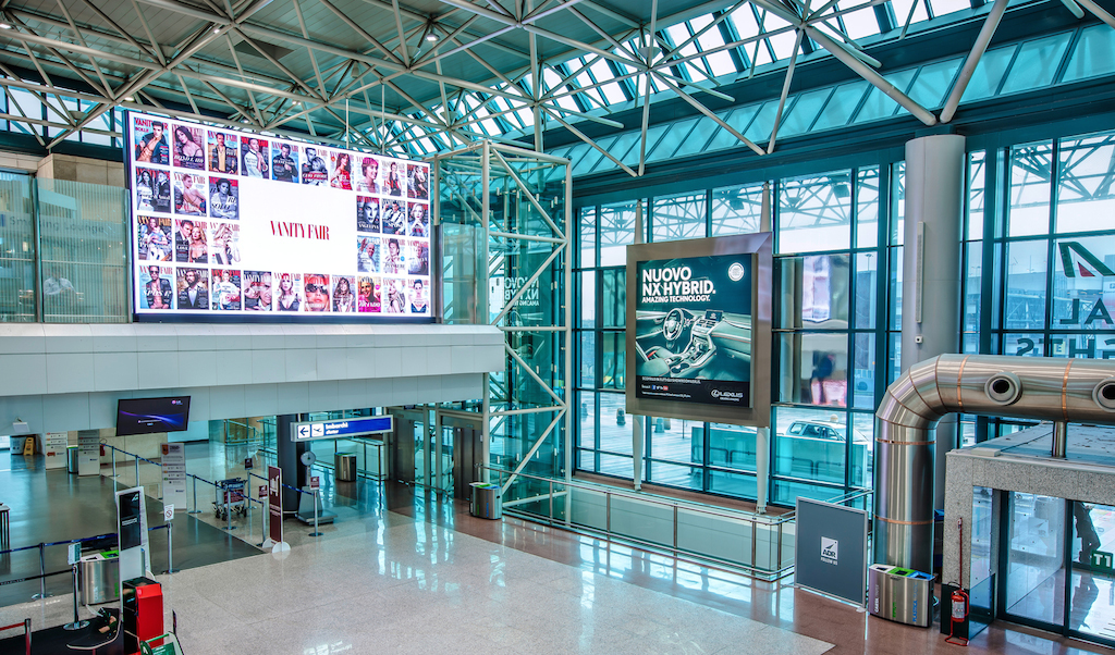 Uno de los objetivos fundamentales de la estrategia de reconstrucción de publicidad de Clear Channel para Fiumicino ha sido fomentar la imagen de las marcas, y las pantallas de gran formato en una red de publicidad digital han sido el soporte idóneo para destacarlo.