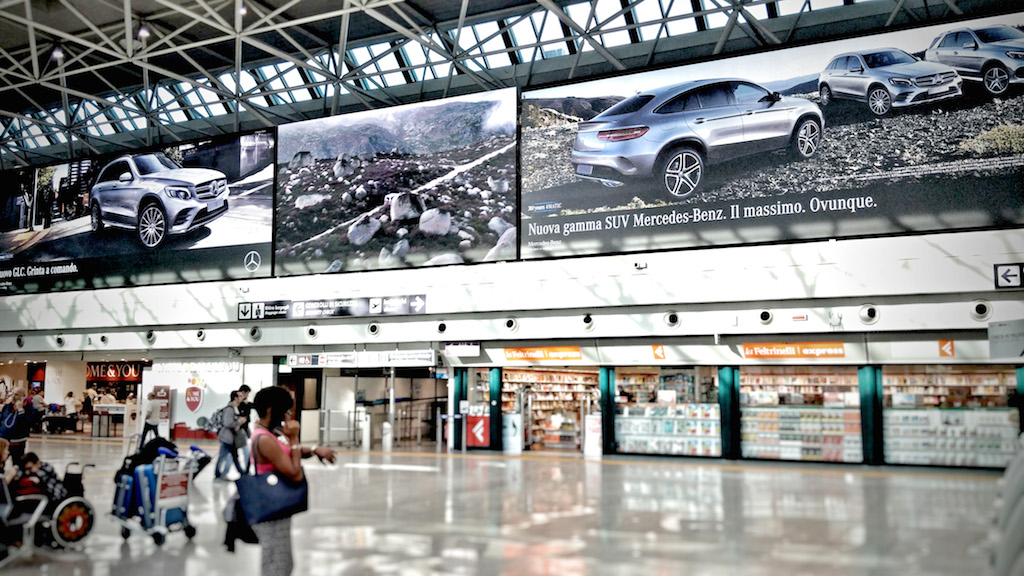 Con cuarenta millones de pasajeros que pasaron en 2015 por sus terminales, el aeropuerto Fiumicino de Roma es también el más grande de Italia y uno de los más activos en Europa. Para mejorar las expectativas de ingresos publicitarios, los gestores Aeroporti di Roma (ADR) seleccionaron a la empresa de publicidad digital Clear Channel Italia para transformar el programa de publicidad en todas las áreas y terminales de esta instalación.