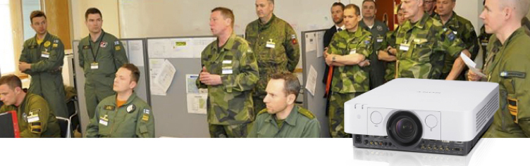 Los altos estándares de seguridad de las Fuerzas Armadas suecas exigen que la información confidencial se mantenga alejada de miradas de extraños, y esto se extiende a todos los dispositivos electrónicos, incluso los proyectores de datos, en los que unas señales débiles podrían verse comprometidas por una fuente externa.