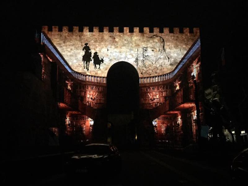 ラ・マンチャ州タラベラ・デ・ラ・レイナ市の壁は、Ibercover Studioが制作したビデオマッピング番組「Luz de Cervantes」の開始に選ばれた舞台となった。, como parte de los actos del IV Centenario de la muerte del escritor, que también recalará en las ciudades de Cuenca y Almagro, con una puesta en escena diferente.