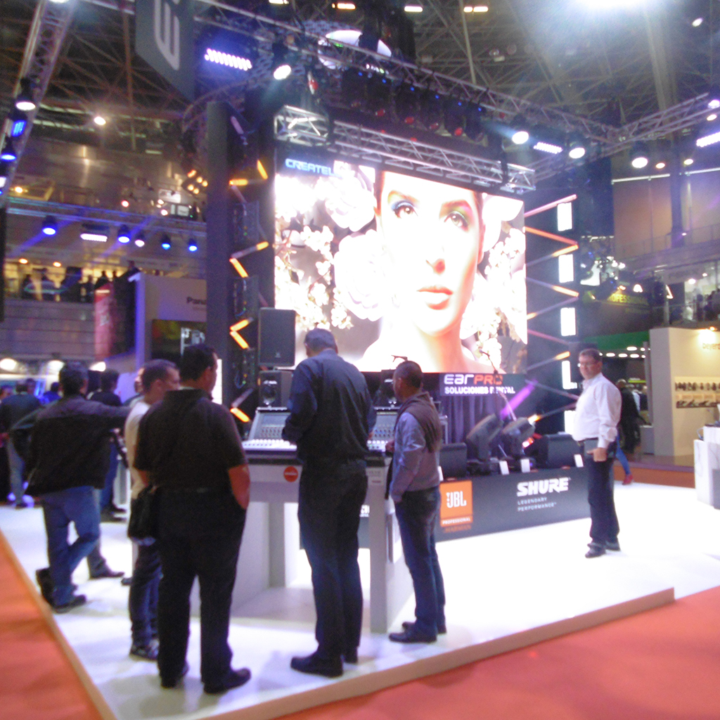 La iluminación del stand se controló desde una consola M6 de Martin, que los profesionales pudieron conocer en detalle gracias a las explicaciones realizadas por Sasi García, product manager de iluminación de Earpro, que ofreció sesiones personalizadas de familiarización a lo largo de los dos días y medio de duración del certamen.