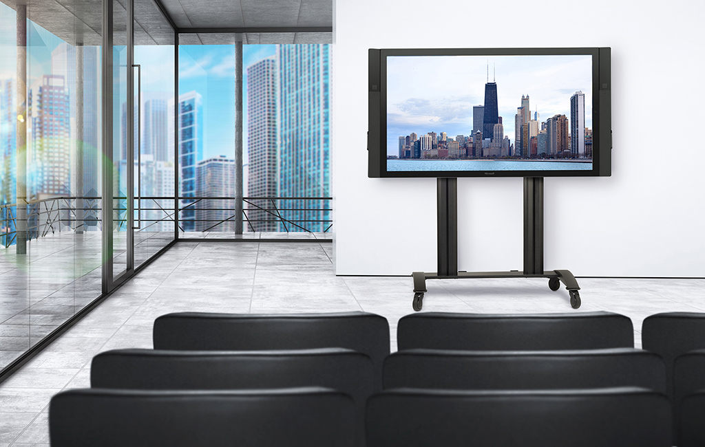El nuevo carro MIS988 de panel plano esta especialmente desarrollado para el sistema Surface Hub de 55”, con capacidad para soportar hasta 136 Kg, así como ajustar verticalmente la pantalla para colocarse a mayor altura del suelo. Cuenta con dos grandes ruedas para realizar movimientos suaves cuando se desplaza a diferentes espacios, así como una función de bloqueo para crear una base estable cuando la pantalla táctil está en uso, además de canales integrados de gestión de cables y de ocultación de los mismos.