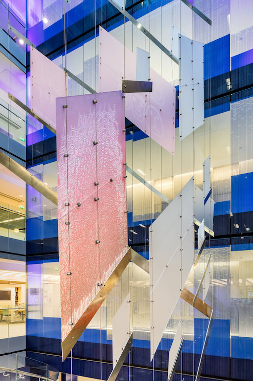 El diseño anima a la plantilla de Arup a comunicarse a través de la plataforma de colaboración Yammer de la empresa. La dinámica estructura es resultado del trabajo de un equipo multidisciplinar, liderado por Laura Sims, con materiales y conocimientos adicionales de Base Structures, メック, Aalco y White Light.