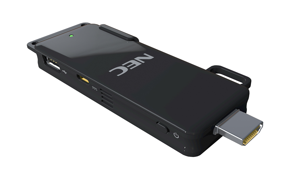 El dispositivo se inserta directamente en un puerto HDMI, aportando funciones de presentación inalámbricas a los proyectores y pantallas compatibles. El stick también es compatible con productos que no forman parte del portfolio de NEC.