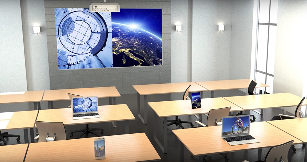 Desde las oficinas a las aulas, es posible conectar cualquier dispositivo Windows, OSx, Android o iOS utilizando la app de manera inalámbrica, que es gratuita y está disponible en App Store y Google Play Store. La conexión se realiza de manera segura a través de un pin en la app para compartir contenido con otros participantes instantáneamente. La solución permite conectar varios dispositivos móviles a la vez a un MultiPresenter.