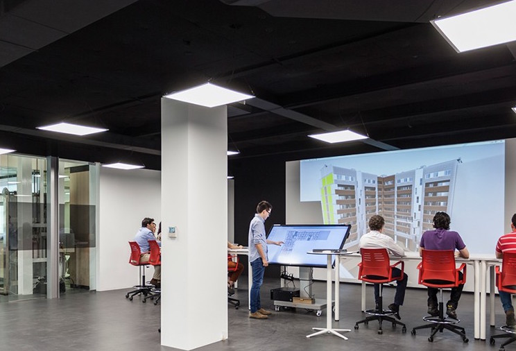 Construcciones Lobe ha equipado su nueva BigRoom, donde se realizan las reuniones técnicas de obra utilizando la metodología BIM en sus procesos constructivos, con la pantalla táctil multiCLASS Touch Screen y el soporte móvil convertible en mesa multiCLASS Mount para la presentación de contenidos dinámicos de sus servicios y promociones. Desde esta pantalla Led HD de alta definición y luminosidad, los técnicos de la compañía pueden manejar de forma táctil todos los recursos disponibles.