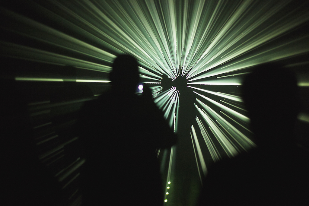 La tercera instalación del estudio de creatividad adidas NMD Room by PlayModes es ‘Cluster’, una instalación audiovisual inmersiva adaptada a una de las salas de Fabra i Coats. La instalación esquematiza de forma geométrica el espacio mediante instrumentos lumínicos que generan un discurso audiovisual a tiempo real, transformándolo en algo abstracto a través de la luz y el sonido.
