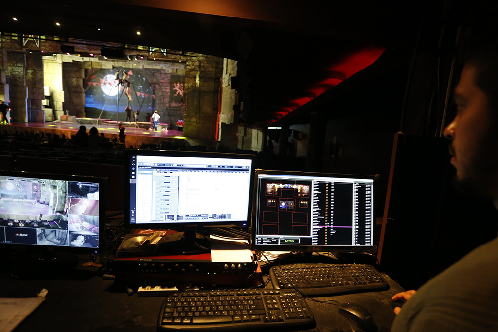 Proyecciones Digitales diseñó toda la técnica, desde la generación de las plantillas para la deformación y adaptación de los vídeos al mapping, hasta determinar qué proyectores usar, dónde instalarlos, los tipos de lentes, qué concentración de luz se iba a lograr, los tamaños de píxel, cómo calibrar la imagen a las diferentes superficies y texturas de proyección y cómo sincronizar los distintos cues de vídeo con la consola de sonido y luces.