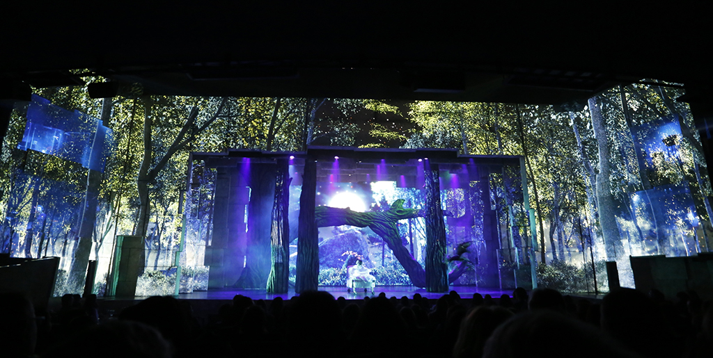 Para la puesta en escena se han utilizado 8 proyectores D12WU-H y dos DXG1051-Q que generan sobre el escenario un total de 130.000 lúmenes y producen una resolución 20.000.000 de píxeles RGB. Para la reproducción del contenido se utilizan cuatro servidores de vídeo, uno de control del sistema y los otros como reproductores para el envío de señales a cada proyector.