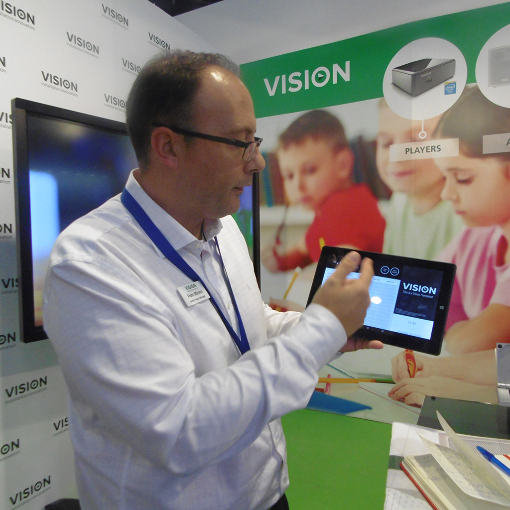 El panel interactivo multi-táctil ActivPanel v4 con Android embebido de la firma Promethean y las soluciones de audio de Vision son las novedades más representativas del mayorista para el aula.