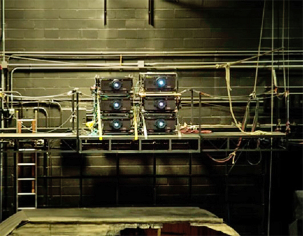 Para llevar a cabo esta representación la Ópera Nacional de Washington optó por seis proyectores PT-DZ13K de 12.000 ルーメンの パナソニック que se montaron sobre el raíl del balcón del anfiteatro, a solo un metro del público, y otros seis PT-DZ21K de 20.000 lúmenes que se ubicaron en la parte superior sobre una plataforma flotante.