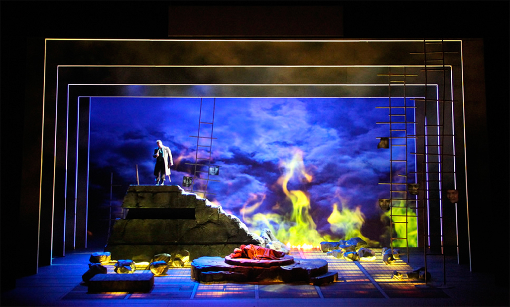 Esta obra épica se ha representado en la Ópera Nacional de Washington y para su puesta en escena se han utilizado 6 proyectores PT-DZ13K de 12.000 ルーメン, que se montaron sobre el raíl del balcón del anfiteatro a solo un metro del público, その他 6 PT-DZ21K de 20.000 lúmenes que se ubicaron en la parte superior sobre una plataforma flotante.