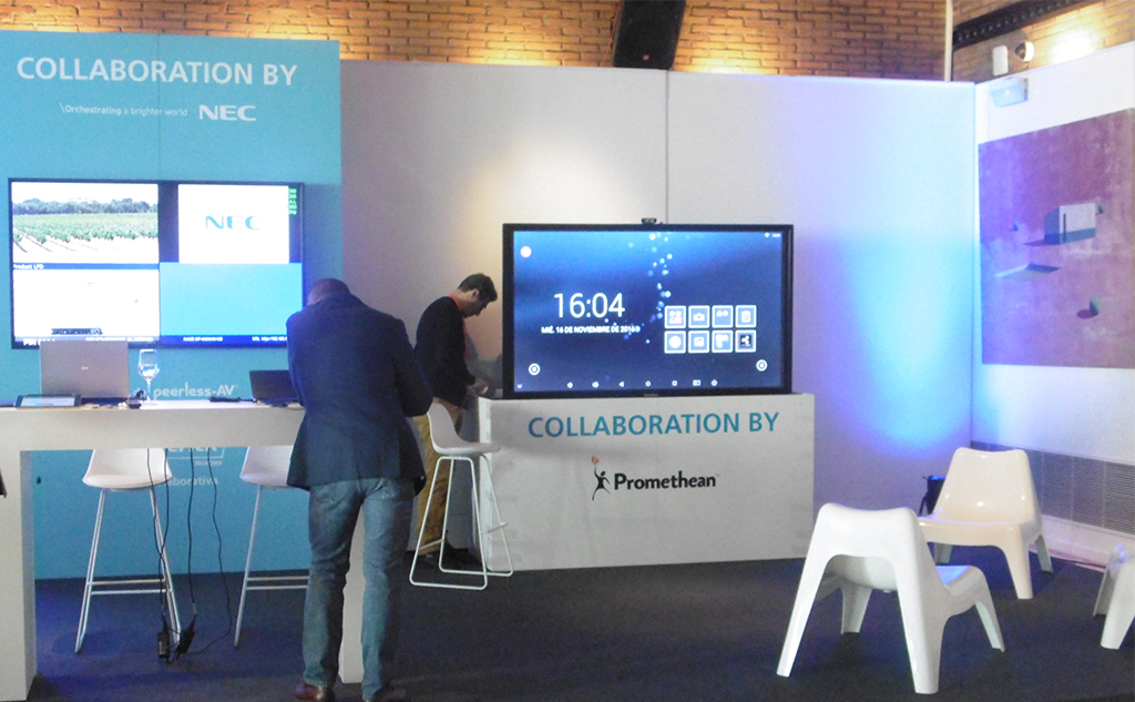 En esta área también se exhibieron diferentes propuestas audiovisuales como las soluciones de proyección, pantallas y MultiPresenter de NEC o el ActivPanel de Promethean con Android integrado. Esta área expo se complementó con una pantalla de proyección Nobo y los soportes Peerless-AV.