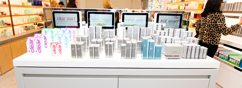 その上, el software SoC y HTML5 de Signagelive permite a Dermalogica dar a conocer su gama de productos más representativa a través del concepto ‘Lift and Learn’, incrementando la fidelidad a la marca. Artículos cuidadosamente seleccionados se colocan en pequeños sensores (ocultos en el interior de los contadores) ubicados delante de las pantallas, dentro de la tienda. Si un artículo es ‘levantado’, un disparador se activa para mostrar información detallada en la pantalla correspondiente.