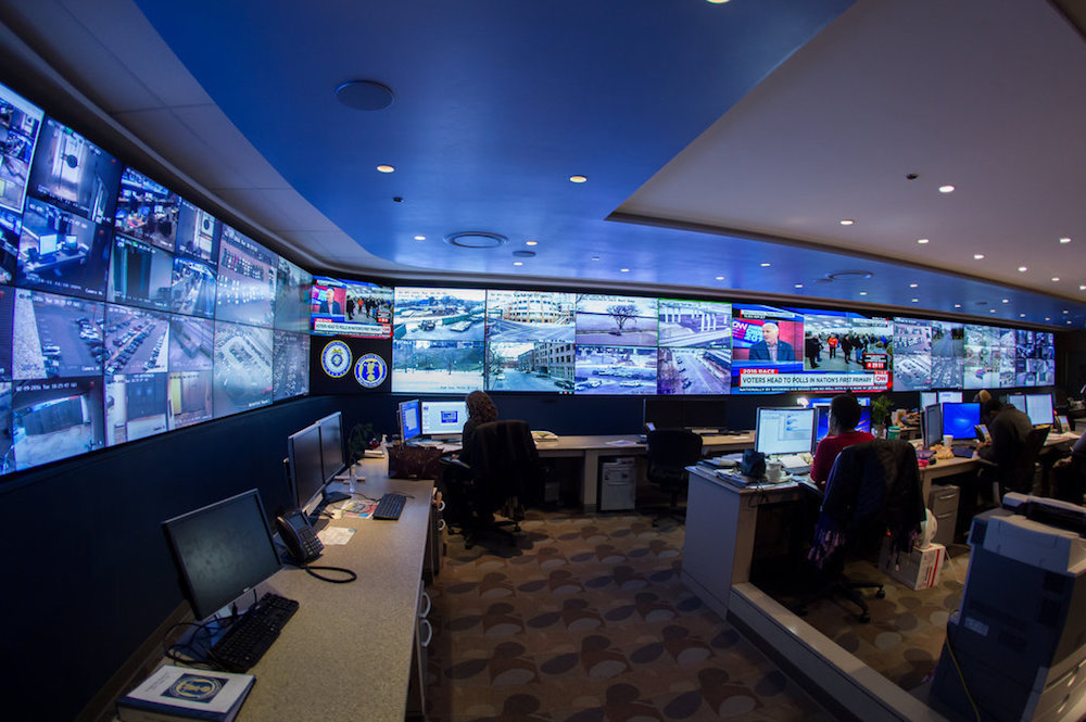 Un gran videowall, で構成されています 36 pantallas LCD de 55” de este fabricante, protagoniza el denominado Centro de delitos en tiempo real del Departamento de Policía de Memphis, desde el que se monitorizan ininterrumpidamente las imágenes que captan las cámaras de seguridad distribuidas por esta ciudad estadounidense.