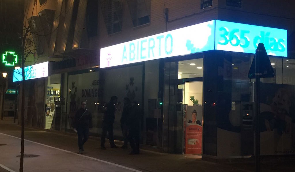 数年後、徹底的なリハビリを経て, サンディエゴ・デ・ロルカ薬局が営業を再開, そして事件から約6年が経った頃、, この施設の責任者は最新のデジタル技術の導入を祝う, 数か月前に大判デジタルメディアが導入されたことで、 (の 20 ㎡) LED技術を搭載した, スペイン最大のデジタルファサードを備えた薬局の先頭にそれを配置しました.