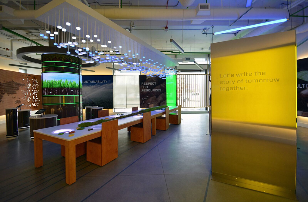 “Este centro de la experiencia está localizado junto a la entrada principal en una zona por la que pasan unos 800 empleados todos los días. Para la mayoría de la gente una pantalla curvada es un espectáculo completamente nuevo y esa sensación de tecnología futurista es un elemento perfecto para una empresa a la vanguardia de la tecnología en la producción de alimentos”, comenta Michael Fornander.
