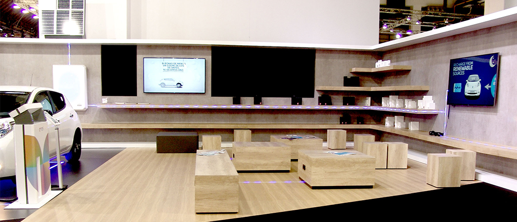 Para esta ocasión se ha creado un espacio vanguardista y tecnológico que reflejaba los modelos que presentaba la marca japonesa. En el espacio de exposición se instaló una gran pantalla Led de 3,9 mm con unas dimensiones de 14,5×3,5 metros que ha sido la protagonista y que ha sido utilizada para mostrar las últimas novedades de Nissan.
