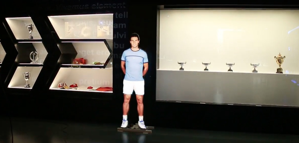 この場合, su objetivo era convertir a este tenista que se acaba de proclamar por décima vez campeón del Rolland Garros en una figura virtual vestido con su equipación oficial y en el que se le puede ver dando la bienvenida a los asistentes al museo en la sala de los trofeos.