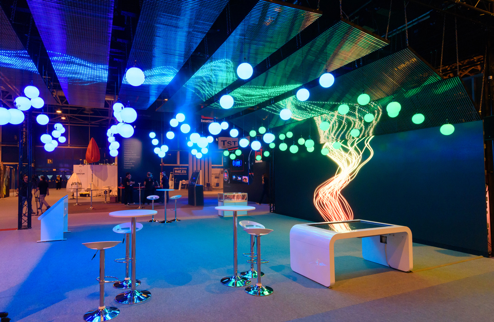 En su stand se instalaron 84 esferas Led motorizadas e integradas con una pantalla semitransparente para techo Matrix de 31 ピクセルピッチmm. También contaba con un display Unilumin de gran formato y alta resolución con un pixel pitch de 2,6. La acción comercial y promocionales se llevaron a cabo desde una mesa táctil multitouch y un asistente virtual de Digalix Solutions.