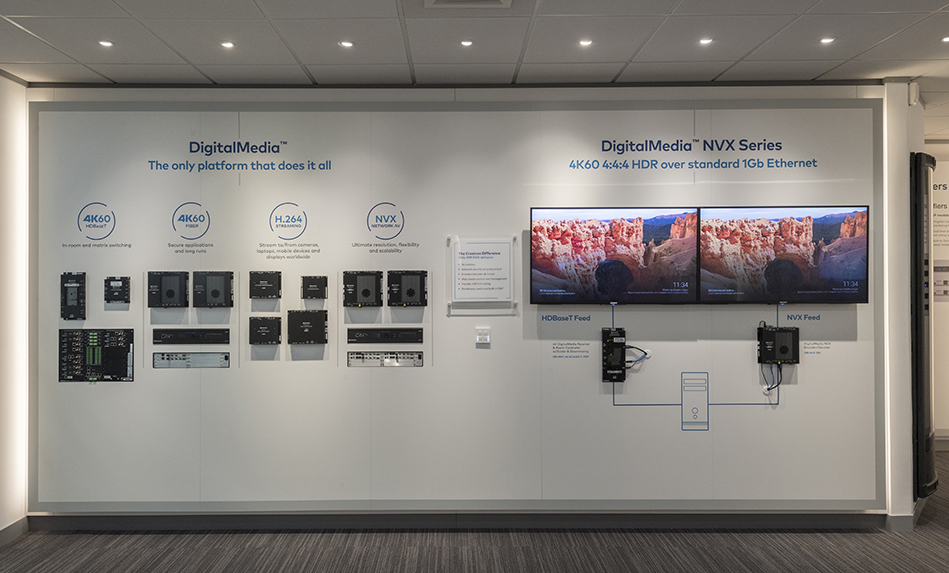 Entre las nuevas actualizaciones que se han incorporado en el centro de experiencia de Cobham se encuentra la última generación de DigitalMedia. La serie DM NVX es una solución completa de extremo a extremo que ofrece 4K60, 4:4:4 y HDR sobre Ethernet de 1Gb estándar. Incluye enrutamiento USB 2.0, DSP y codificación/descodificación todo en uno.