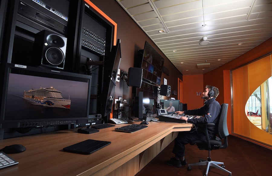 Los nuevos buques AidaPrima y AidaPerla de la línea de cruceros Aida Cruises cuentan con un estudio con tecnología avanzada para la producción de contenidos audiovisuales, con productos del especialista ブラックマジックデザイン, para el entretenimiento y shows a bordo de sus pasajeros.