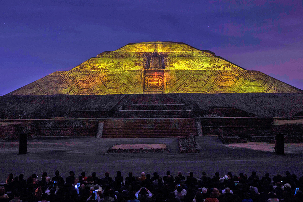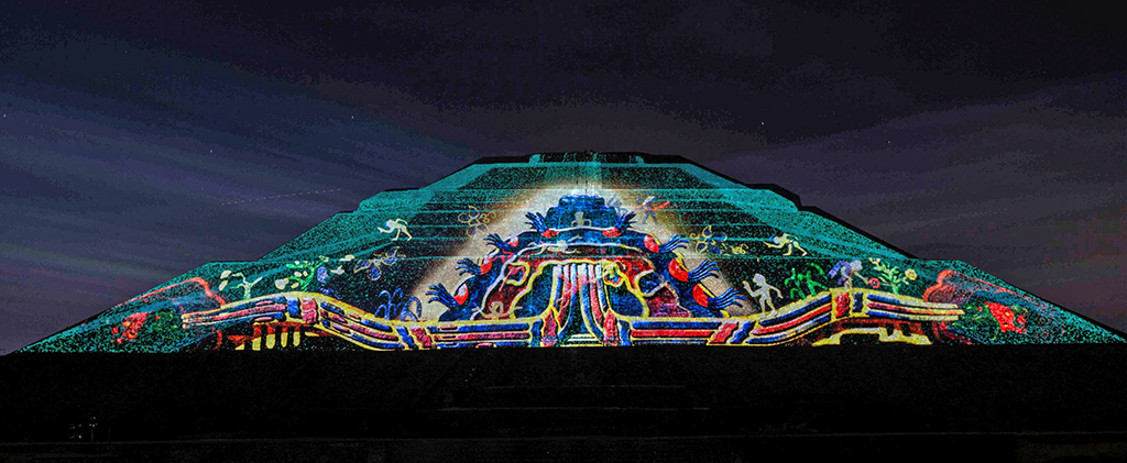 Con objeto de revivir la grandeza de la zona arqueológica mexicana se creó un videomapping, para el que se utilizaron 19 プロジェクター クリスティ ローディ 4K45. Bajo el nombre Experiencia nocturna en Teotihuacán se iluminaron las pirámides del Sol y de la Luna durante el último año y medio.
