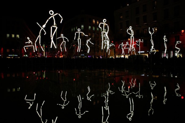 En ‘Les Voyageurs’ su autor, Cédric Le Borgne, crea figuras humanas iluminadas con la que intenta integrar la obra dentro del movimiento, el tiempo y el espacio, en un contexto de vida, sin nociones preconcebidas sobre la naturaleza de los espacios con los que trabaja: interiores, exteriores, hipercentros, suburbios, terrenos baldíos… cada uno tiene su propia poesía y dimensiones, visibles o invisibles.