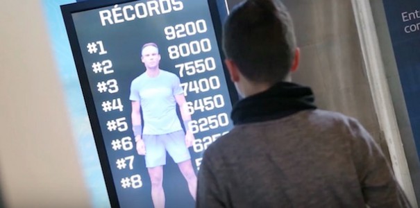 En otro módulo -‘Entrena con Rafa’-, el tenista reta a los visitantes a realizar los mismos movimientos que hace él para empezar a entrenar. En este puesto se emplea el sistema Kinect de control de movimiento, junto con sensores de profundidad e infrarrojos, además del análisis de forma simultánea de veinticinco puntos del cuerpo del jugador para compararlos con sus movimientos.