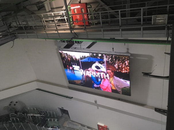 Para conseguir una mayor conexión con los espectadores y captar su atención también se han instalado en las paredes tres marcadores Led de 6X3,75 metros de Absen.