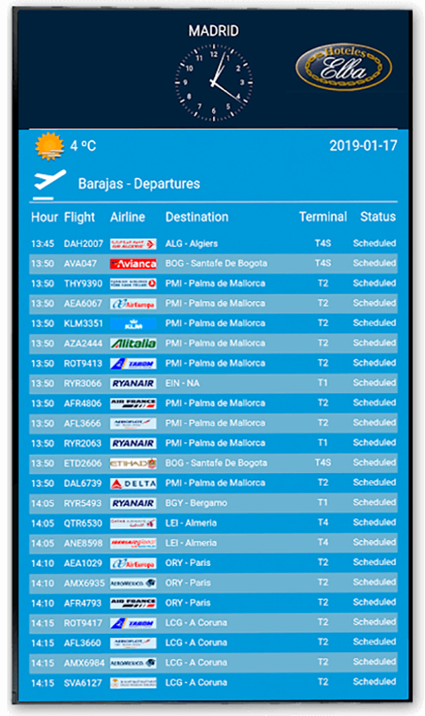 Elba Madrid Alcalá también ha adquirido a Nonius la herramienta de señalización Airport Info, que informa en tiempo real a los huéspedes de los horarios de vuelos de cualquier aeropuerto del mundo.