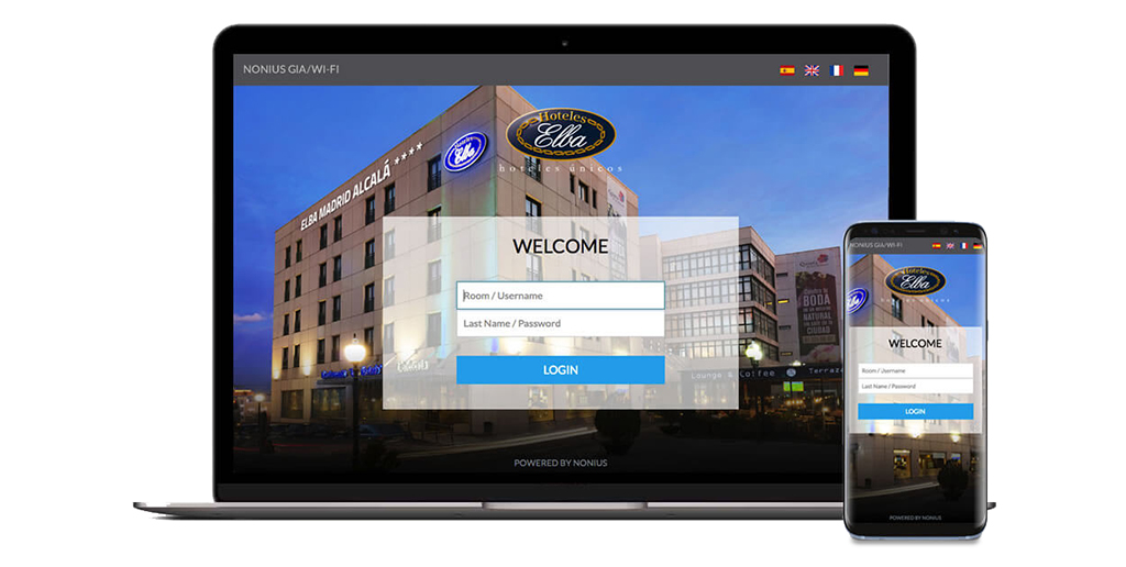その上, el servicio WiFi de Nonius es personalizable, por lo que el hotel puede configurar el portal del inicio de sesión, crear una lista negra de sitios web o definir sus paquetes de Internet.