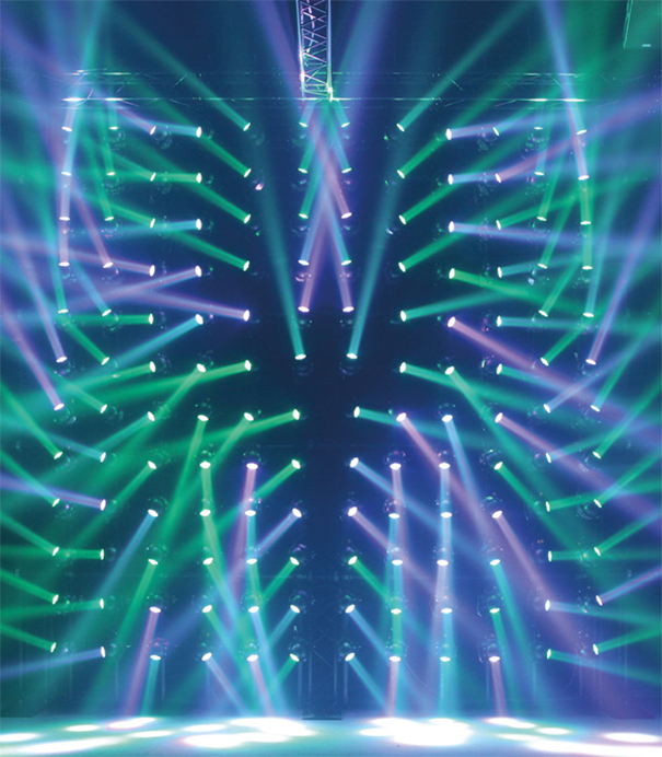 Este wash está concebido para su uso en grandes espacios contando con una potencia de 48.000 lm. Su sistema de mezcla de color con doble saturación CMY permitirá conseguir infinidad de colores con los que bañar un espacio. Gracias a su amplio rango de zoom (3º-36º) puede realizar también funciones de beam.