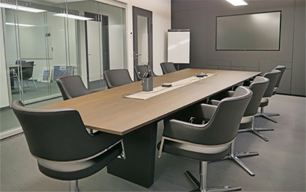 En las salas de reuniones, la empresa cuenta con tres pantallas MultiSync C751Q de gran formato que ofrecen imágenes UHD de alta resolución. Con sus biseles delgados y su moderno diseño, encajan en la estructura del nuevo edificio. その上, un proyector de instalación PA653U con lente intercambiable NP41ZL garantiza unas presentaciones brillantes en la sala de conferencias.