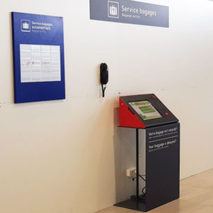 Estos sistemas digitales, equipados con una pantalla de 19 インチ, permiten a los pasajeros que transitan por los aeródromos franceses consultar la información de los vuelos, registrar e imprimir las etiquetas de los equipajes, obtener su tarjeta de embarque, entre otros servicios.