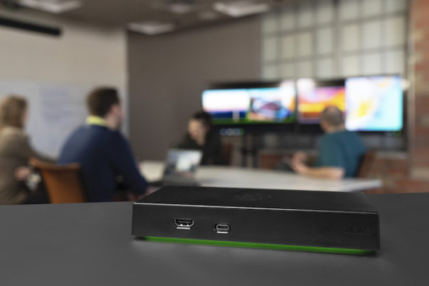Solstice Pod es una solución de colaboración inalámbrica que se conecta a la pantalla de una sala de reuniones, lo que permite que un número ilimitado de usuarios se conecte a su vez, comparta y controle a la vez el contenido que se muestra en pantalla.