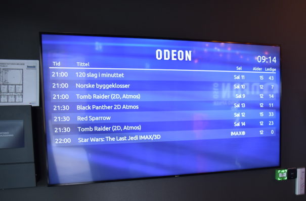 Odeon Kino AS trabajó para ello con Philips Professional Display Solutions (PDS) y el integrador Atea para desplegar un circuito de señalización digital, con la instalación de un total de cien pantallas de los modelos U-Line y Q-Line del fabricante “para garantizar una experiencia digital completa a los visitantes”.