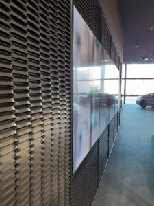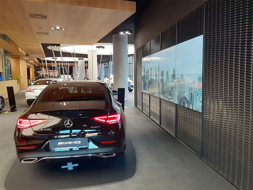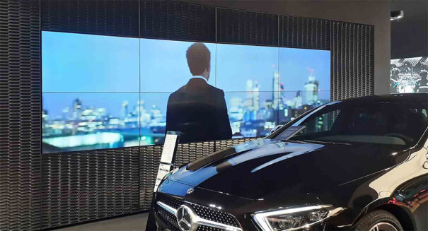 IMSがクライアントのディスプレイメーカーとしてAG Neovoを推奨したのはこれが初めてではない. メルセデスは、顧客が車そのものと同じくらいショールームを楽しんでいると確信しています。これは主に、PN-55D スクリーンで設計されたビデオ ウォールによるものです。.