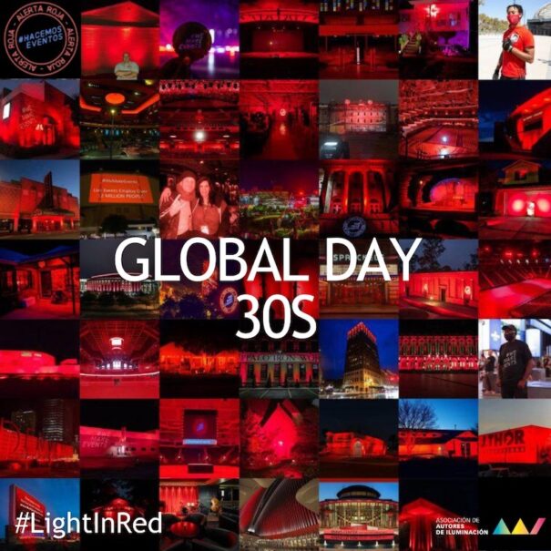 Más de veinticinco países se unen esta noche en Global Day of Action (30-S) para representar a más de treinta millones de trabajadores de la industria mundial del espectáculo y los eventos, MICE y la cultura, que vuelven a hacerse hoy ‘visibles’ con acciones de iluminación en color rojo y solicitan la colaboración de toda la sociedad.