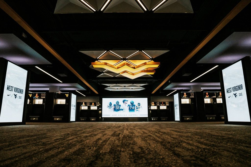 La solución de reproducción de vídeo fue diseñada por BrightTree Studios e instalada por su empresa matriz, Synergy Media Group, habituales proveedores de tecnología de WVU. Da cobertura a cinco pantallas de gran formato ubicadas en el espacioso y moderno Locker Room, que incluye un videowall principal y cuatro pantallas ‘end-cap’ situadas en los extremos de las filas de los lockers.