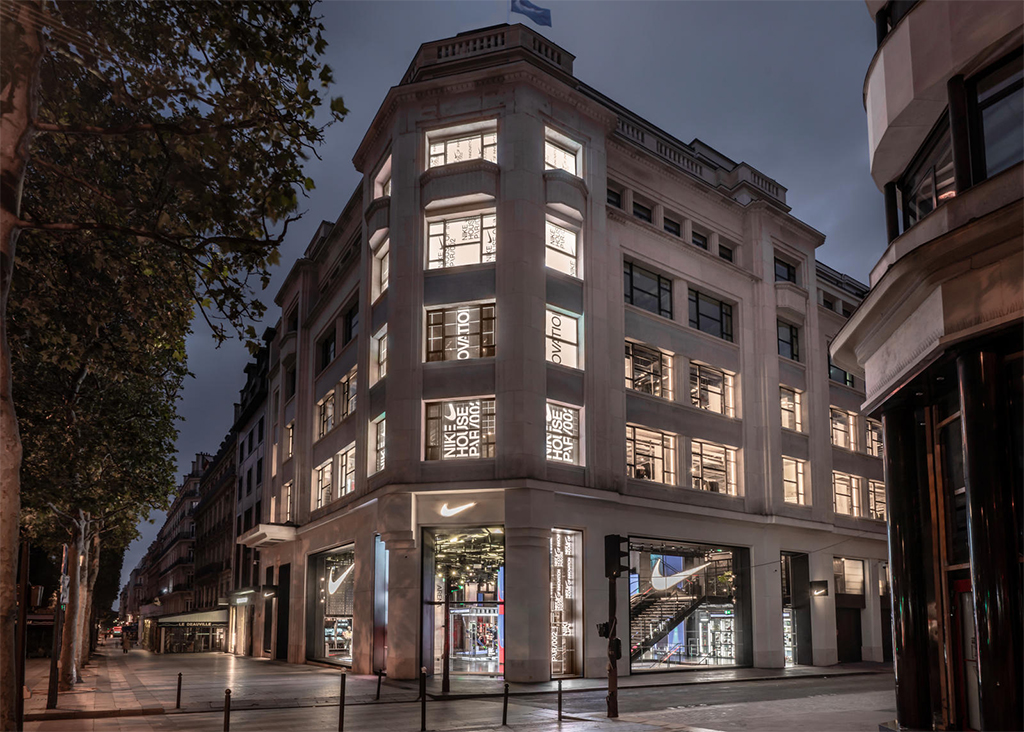 Tras la tienda de Nueva York y la de Shanghái, ナイキ ha abierto este año un nuevo establecimiento en París, concretamente en la histórica Avenida de los Campos Elíseos. Un edificio de cuatro pisos con una superficie de 2.400 metros cuadrados que busca ofrecer una nueva experiencia en el retail deportivo.