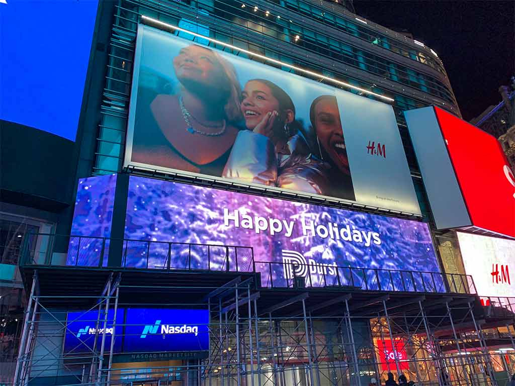 Branded Cities está gestionando las campañas de publicidad y marketing digital de la espectacular pantalla para The Durst Organization; その間 感覚的インタラクティブ se ha encargado del diseño conceptual, la coordinación de los permisos y la documentación.
