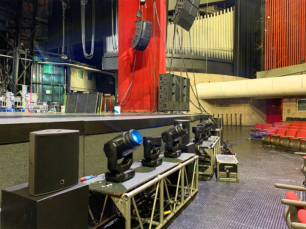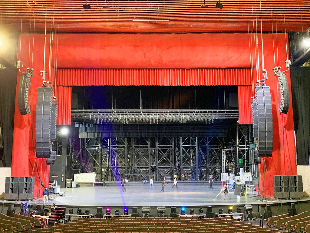 El Lunario consta de dos sistemas colgantes, integrados por seis Kara, y dos subs SB18 por lado, con cuatro subs SB28 ocultos bajo el escenario. Se suministraron veinte recintos coaxiales X8 de tiro corto, que se utilizaron como monitores de escenario y frontfill según las necesidades, con cuatro A10 Wide y cuatro subs KS21 para el sidefill. Nueve LA4X y un LA12X proporcionan la potencia y el control, junto con dos procesadores P1.