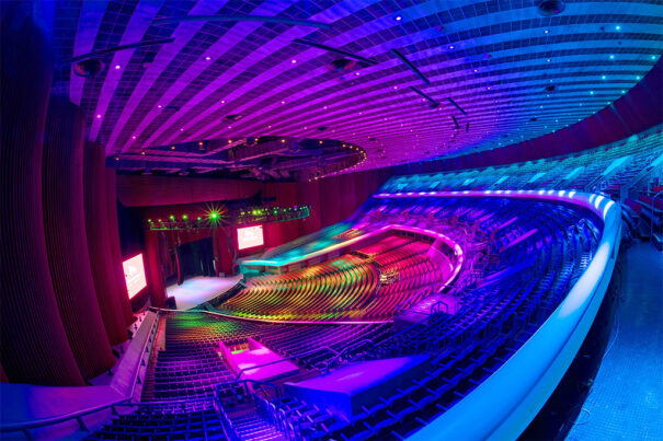 La sala principal del recinto consta de casi 10.000 asientos elevados por encima y alrededor de su enorme escenario de 23 地下鉄, que se utiliza principalmente para conciertos de música nacional e internacional y festivales de canto, danza y cine.