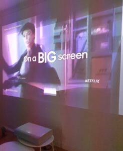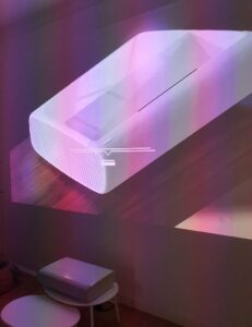 プレミア es el primer proyector triple láser con resolución 4K de Samsung, con el que quiere aportar una experiencia de cine en gran tamaño -hasta 130″- のチームと一緒に 超短焦点 (一人で 24 cm. 壁から).